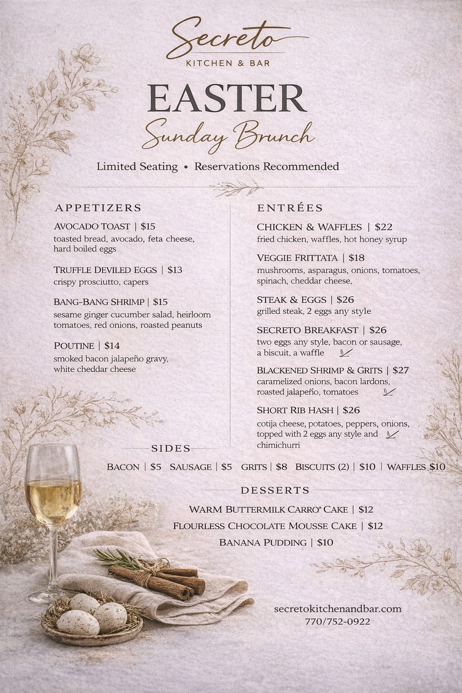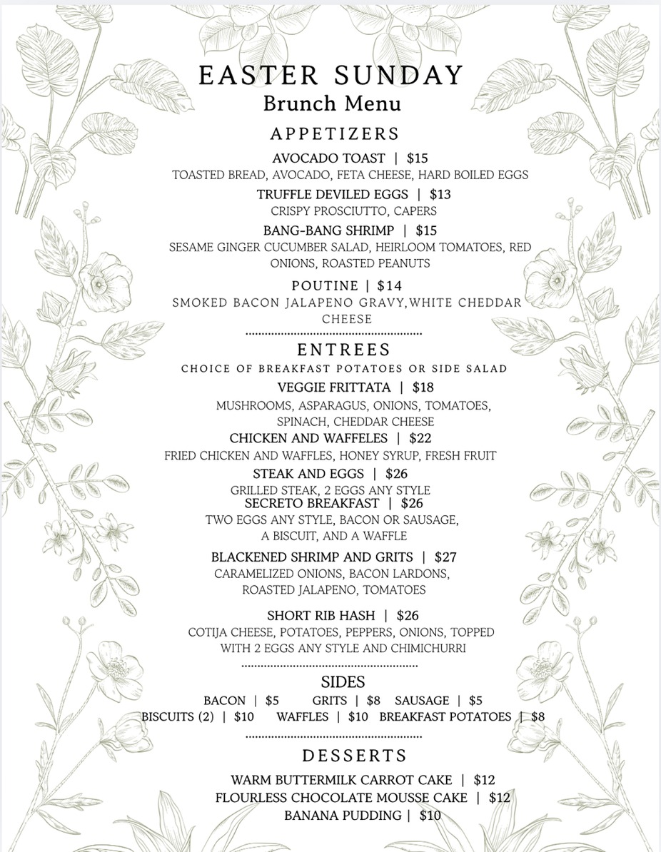 🌷 Easter Sunday at Secreto Southern Kitchen & Bar